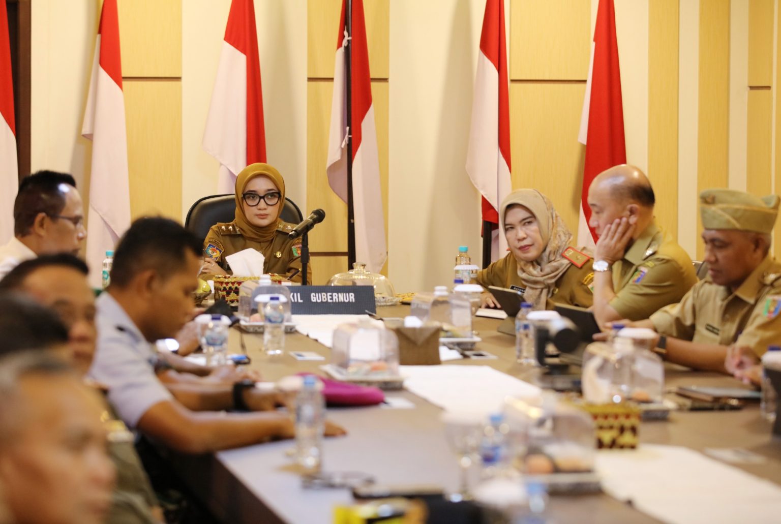 Wakil Gubernur Lampung Jihan Nurlela menghadiri Rapat Koordinasi (Rakor) Pengendalian Inflasi Daerah menjelang Bulan Ramadhan 2025, secara virtual, yang dipimpin Sekretaris Jenderal (Sekjen) Kementerian Dalam Negeri (Kemendagri) Tomsi Tohir, di Ruang Sakai Sambayan, Kantor Gubernur Lampung, Senin (24/2/2025).